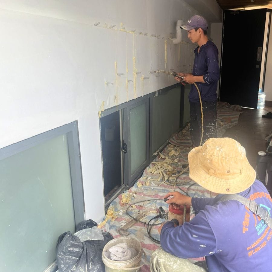 - Tiến hành bơm keo vào các ti bơm đã cố định. cho đến khi keo bơm lấp đầy các khe hở và trào ngược ra ngoài.