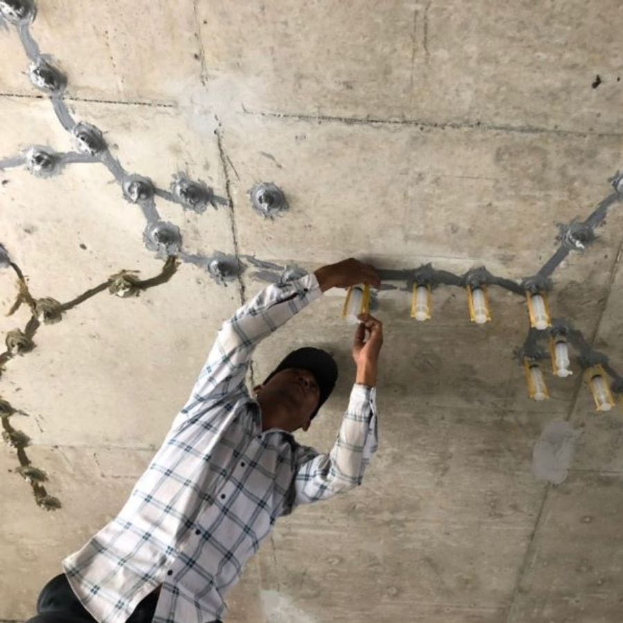 - Có thể dùng xylanh bơm keo hoặc máy bơm keo thực hiện khi thi công