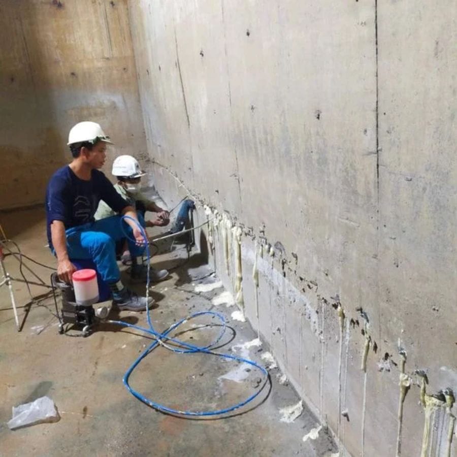 Thi công bơm keo chống thấm vào vết nứt bê tông