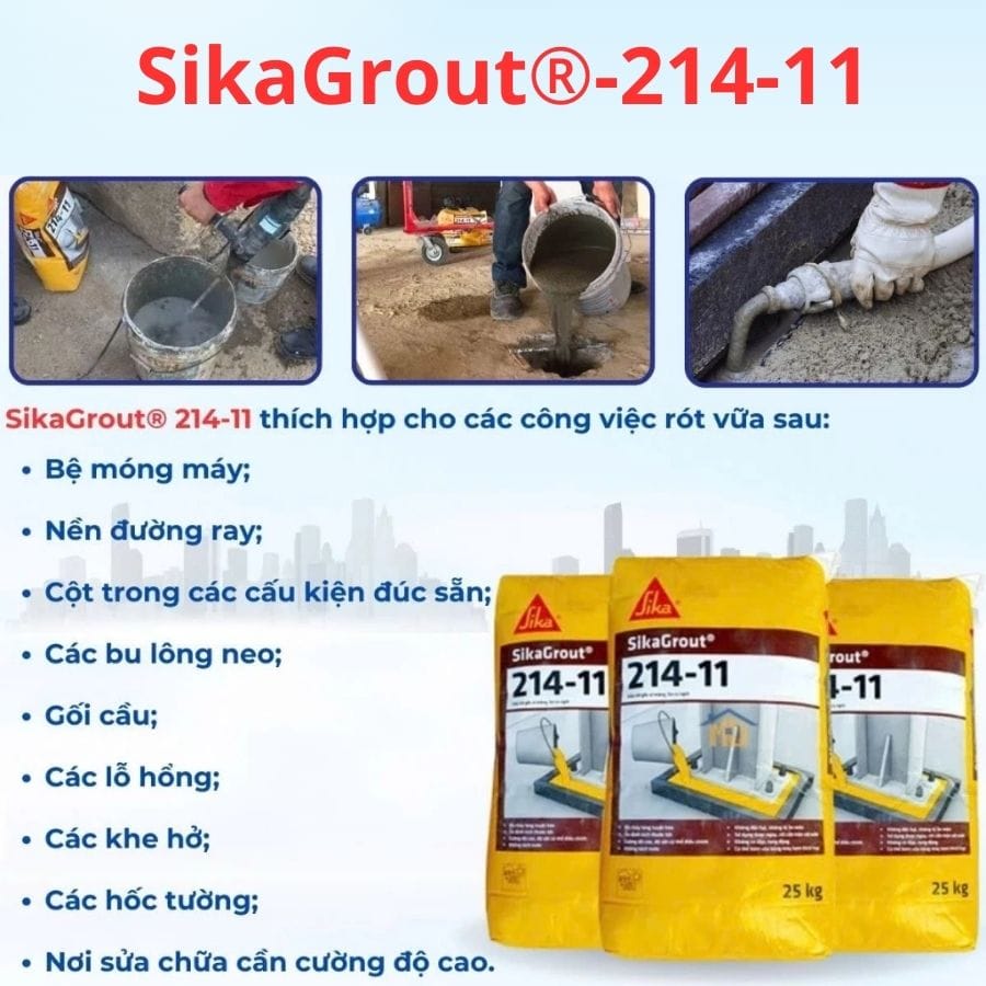 Sika grout 214-11 không chỉ là vữa trộn sẵn thông thường. Đây là một giải pháp hoàn hảo cho xây dựng, với đặc tính tự san phẳng với cường độ cao. Sản phẩm này không những giúp điều chỉnh vị trí bu-lông, lắp đặt móng máy và đường ray một cách chính xác, mà còn đóng vai trò quan trọng trong việc chống thấm cổ ống xuyên sàn.